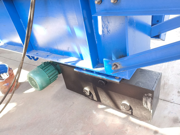 行走機(jī)構(gòu)上與門架底縱梁相連,電機(jī)功率為2×7.5KW,臺車運(yùn)行速度為8m/min。